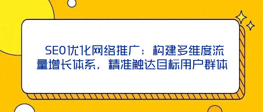 在數字化營銷生態中,SEO優化網絡推廣已成為企業獲取精準流量、提升品牌影響力的核心戰略。本文從關鍵詞策略、內容生態、外鏈權威及社交傳播四個維度,系統闡述如何通過系統性SEO實踐,打造可持續的網站流量新渠道,實現目標用戶的精準引流與轉化。